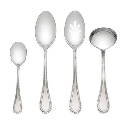 - Includes sugar spoon, tablespoon, pierced tablespoon, and gravy ladle